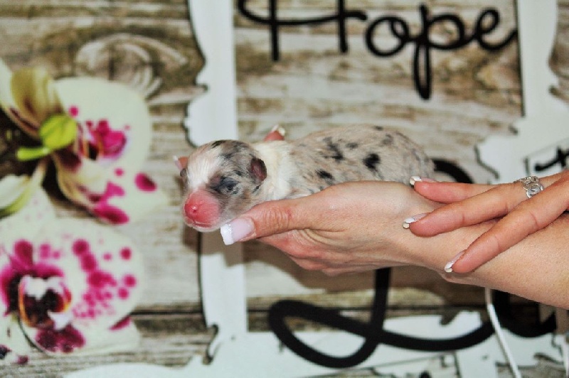 Modjo est né de l' union de Fender et Ibizza, notre première portée. Il est le premier né, avec un poids de naissance de 200 grammes. Sa queue est écourtée.
