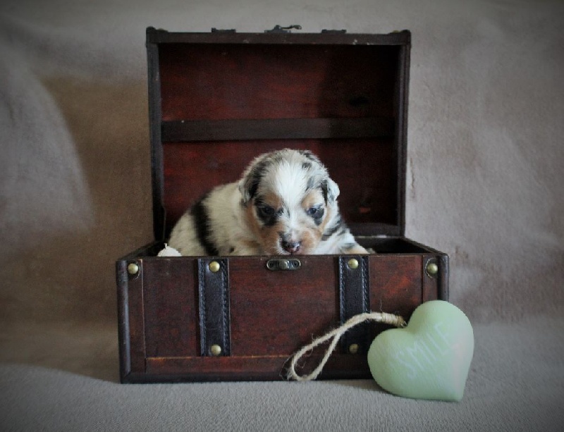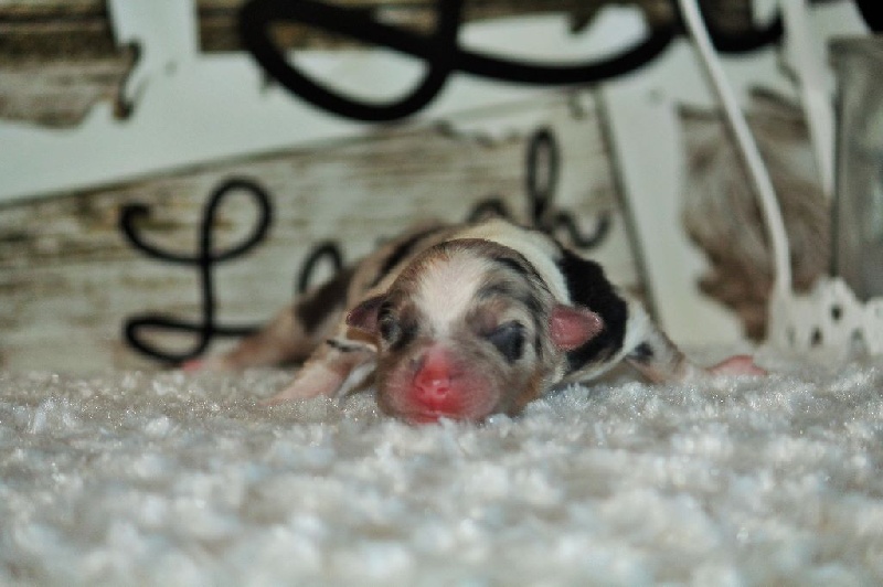 Myron est né de l' union de Fender et Ibizza, notre première portée. C' est le deuxième né avec un poids de naissance de 320 grammes. Sa queue est écourtée. Myron est un petit chien avec du caractère, il a hérité du sourir de ses parents et de la voix de sa maman. C' est un bonhome avec du caractère mais qui reste méfiant avec les inconnus.